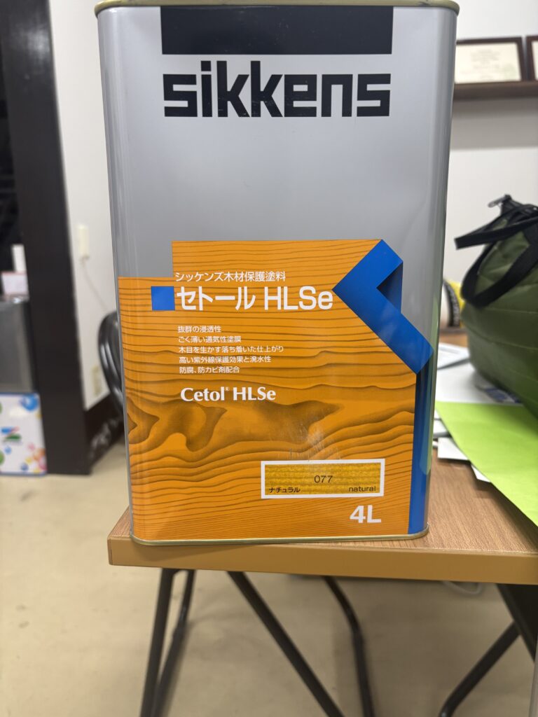 今回はシッケンズのセトールHLSeを使いました。この塗料は、浸透性の塗料になるので木目を生かしたしあがりになります