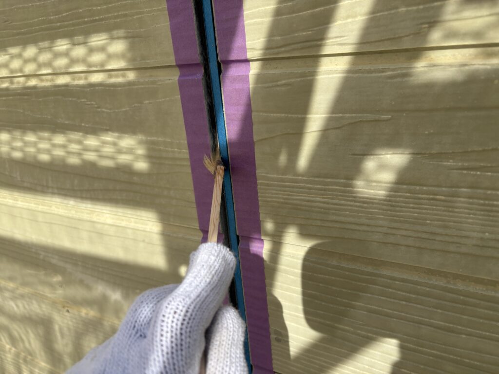 シーリングはサイディングのつなぎ目を埋める事で雨などの水が建物に入らないようにします。