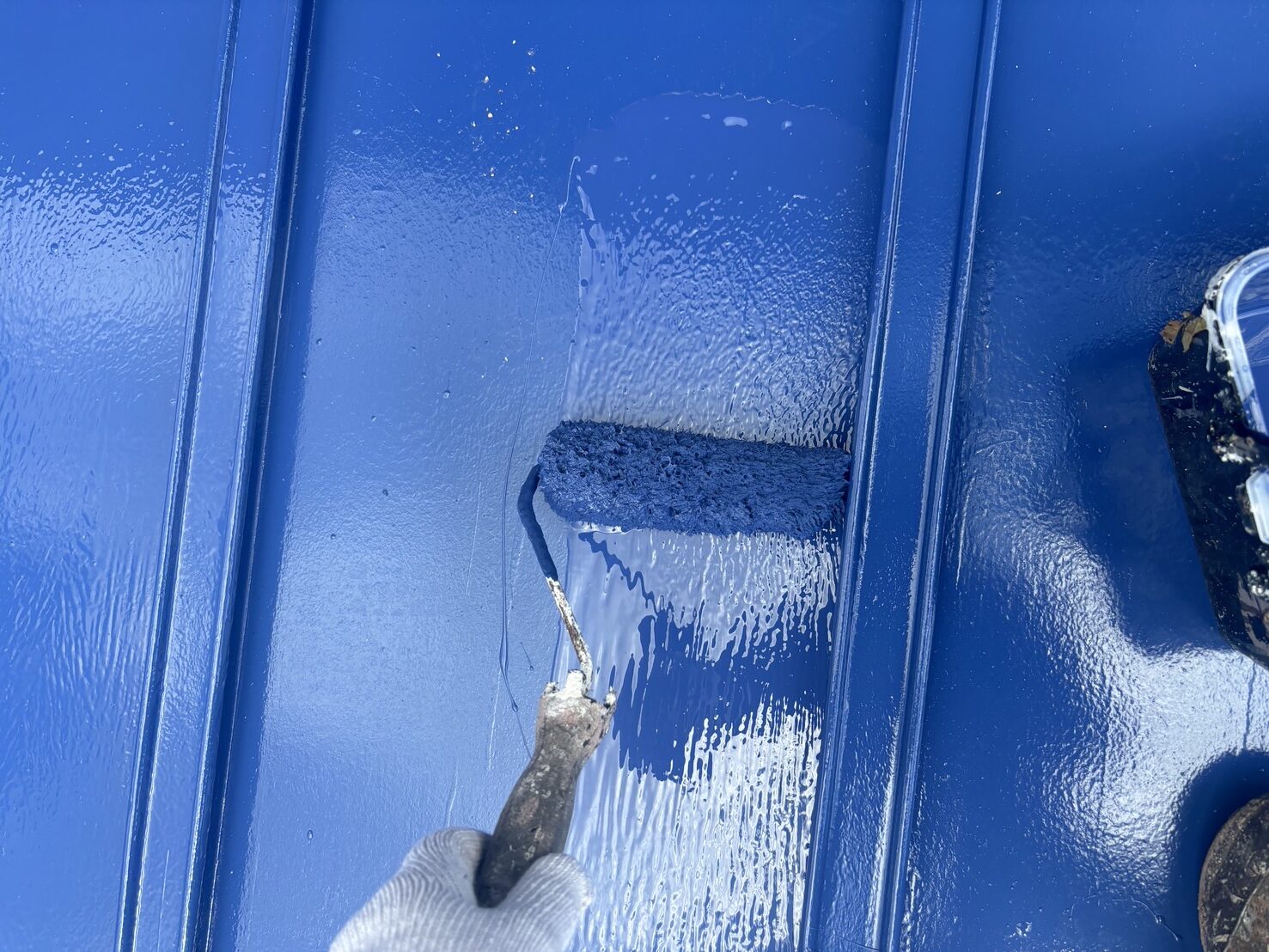 光沢のあるブルーが美しく映え、住宅全体が若返ったように明るくなりました✨️