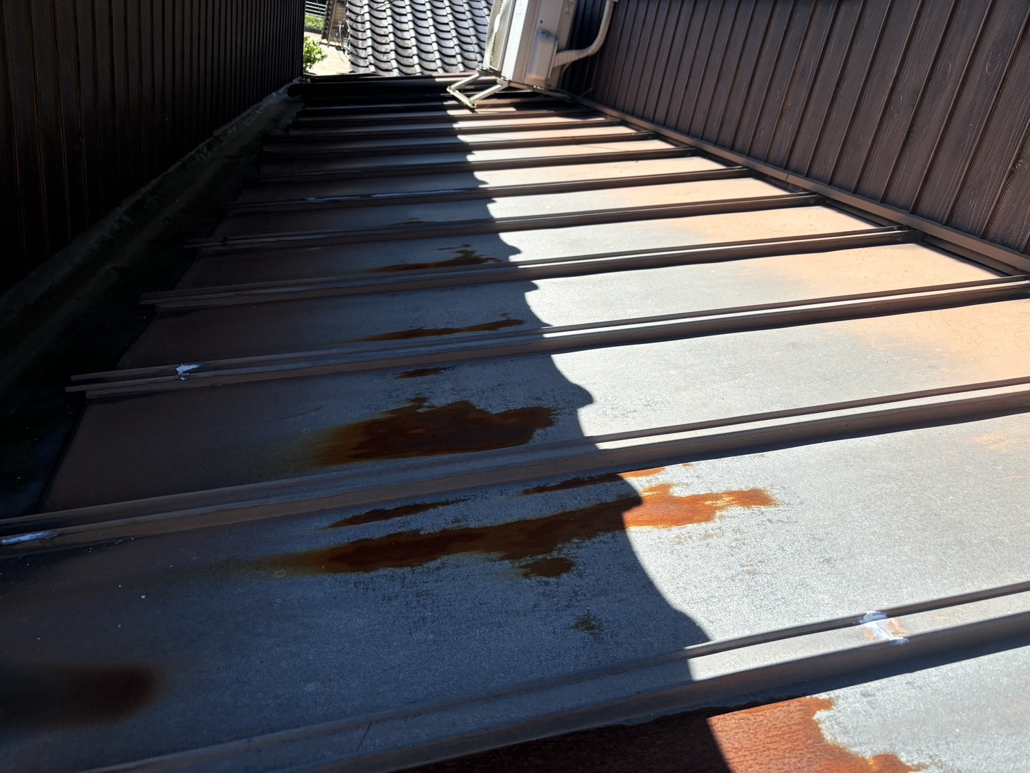 築45年の瓦棒屋根でも、適切な下地処理と高耐久塗料で、ここまで美しく甦ります。