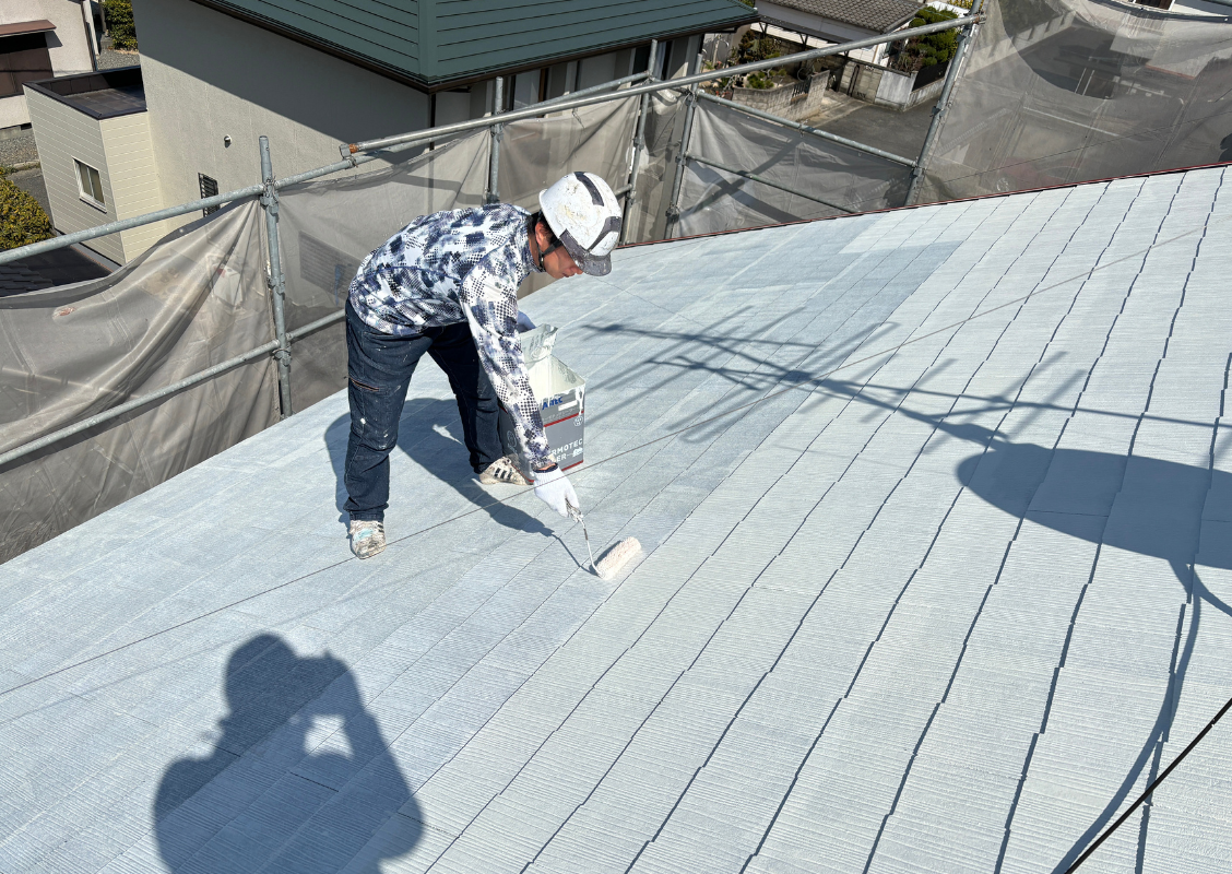 高圧洗浄では、屋根についてしまったコケやカビ、汚れ、前回塗装の塗膜等の不純物などを取り除きます。そうすることで、塗装面が剥がれにくくなります。
